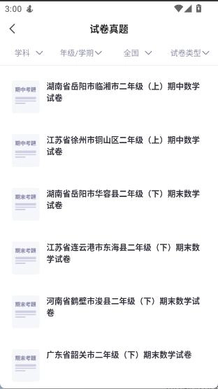 在“试卷真题”板块中,能够查询到全国范围内各年级、各学科的考试真题。