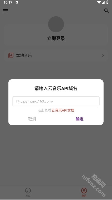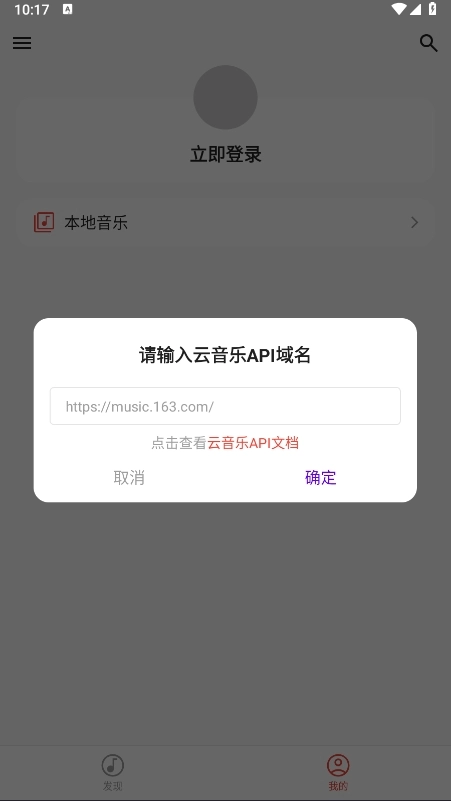 在弹出的对话框中输入云音乐API域名,例如这里演示填写的是网易云音乐的域名。