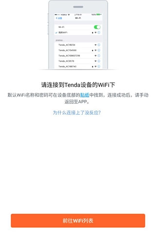 打开后,点击【前往WiFi列表】按钮,即可跳转至WiFi连接界面。