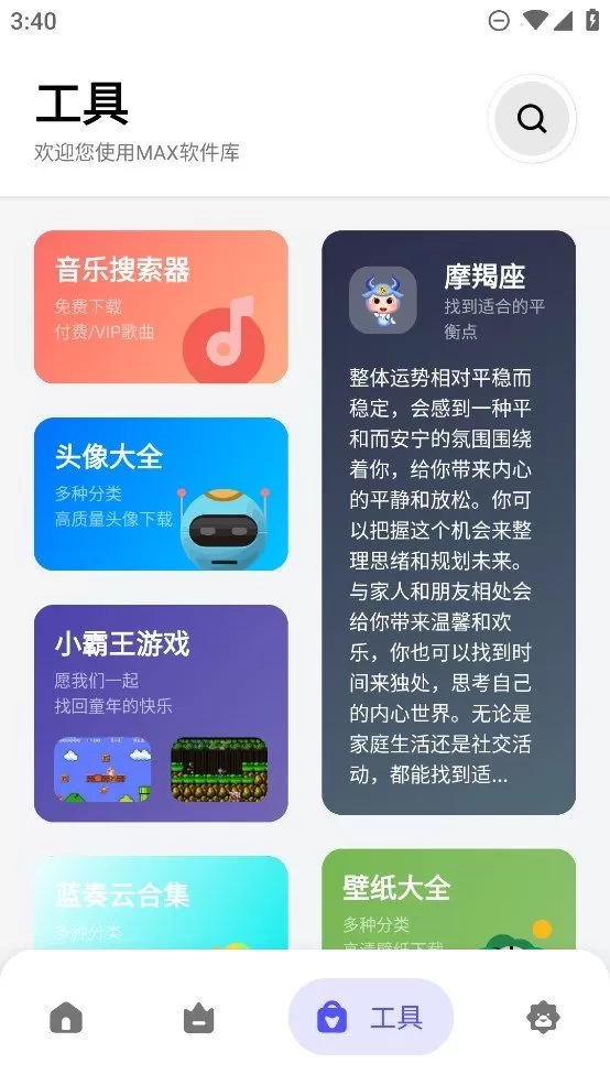 MAX软件库的最新版本,堪称一座资源宝库,无论你想寻觅何种类型的资源,皆能在此找到。只需轻松一键,即可迅速将其安装至手机。该软件库资源丰富多样,并且所有资源都支持免费体验,实在是诚意满满、十分良心。有需求的用户,可千万不要错过这款软件库。
