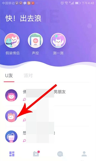 在手机上打开uki应用后,能看到u友分类里有不少uki用户,点击其中任意一位用户的头像即可。