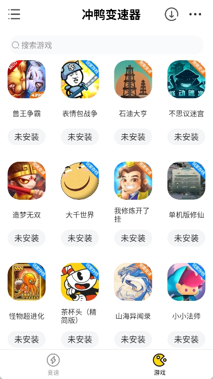 我们首先需要在魔趣网(m.mfun.com)下载并安装冲鸭变速器。