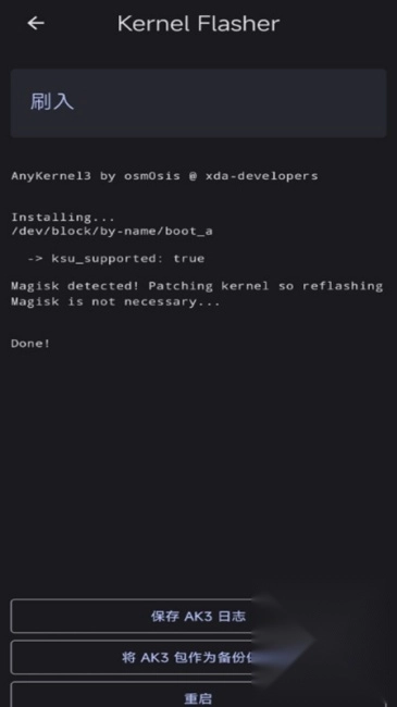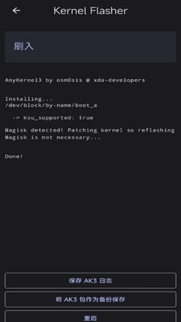 能够刷入、备份和恢复内核,支持AK3格式的内核压缩包。