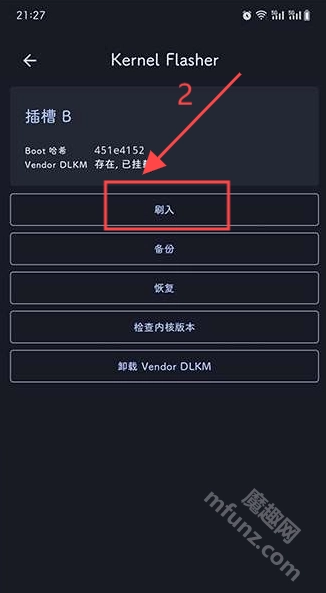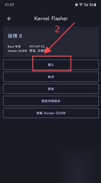 授权完成后插槽b处选择刷入功能