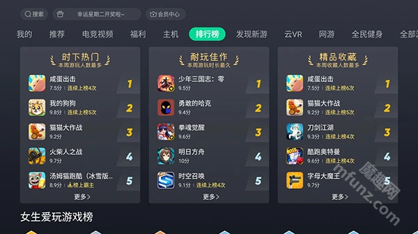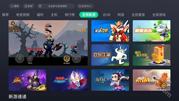 咪咕快游TV版是一款专门面向电视用户打造的游戏盒子应用,在电视上安装好这款应用后,就能连接虚拟手柄畅玩《黑神话:悟空》,不仅支持双人游玩和手柄操作切换,连隐藏鼠标指针图标的操作也可以尝试探索。另外,咪咕快游TV版收录了海量高品质游戏,还提供了丰富的电竞视频内容。不管是当下火爆的《王者荣耀》,还是经典耐玩的《植物大战僵尸》,在这里都能找到,帮助你轻松变身游戏高手。