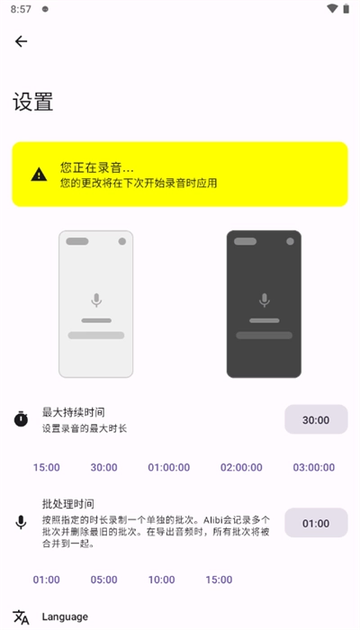 Alibi支持静默后台运行模式,无需开启工作界面即可运行,还能实现息屏录制功能;其电量消耗较低,每小时仅需消耗2至7%左右的电量,十分省电。