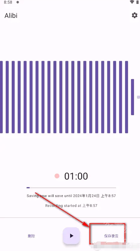保存录像:当您需要留存最近30分钟的录像内容时,点击“保存录音”按钮就能把文件存储到您的手机里。