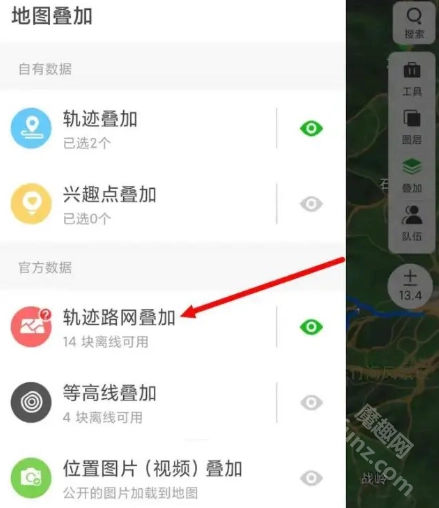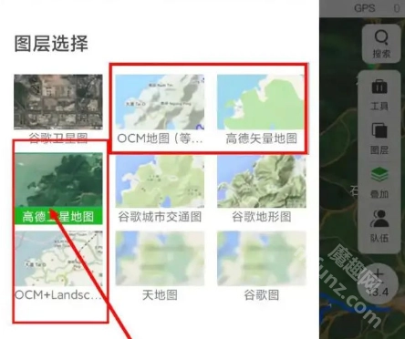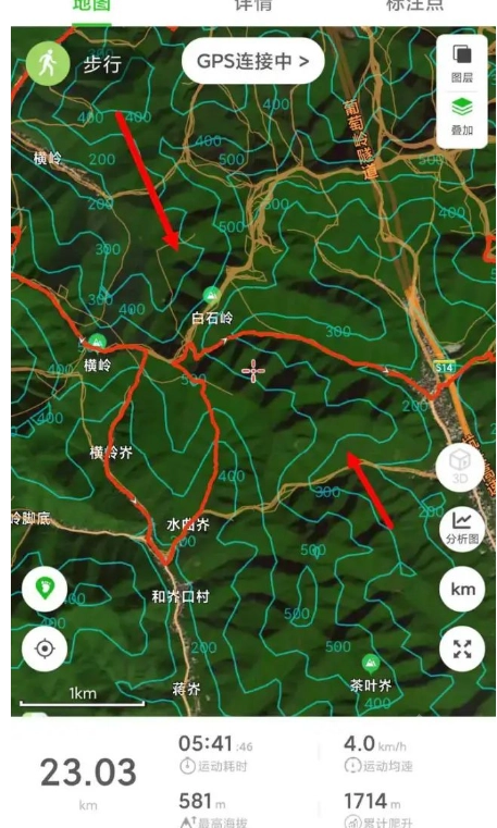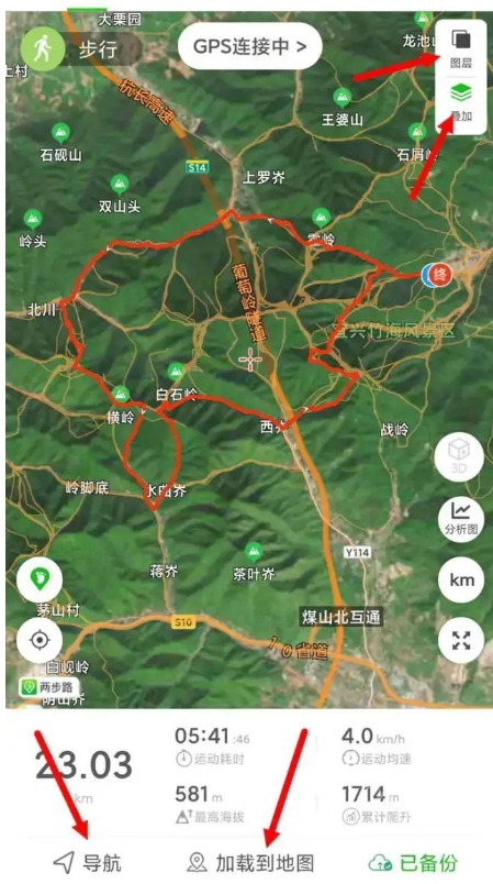 打开后的轨迹如图所示,需要注意的是有4个要点,其中右上角的图层是用于切换地图的。