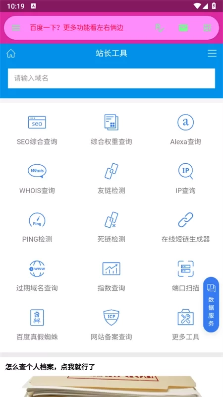 3、点击右侧的三条横线按钮,就能查看更多功能,点击后可快速跳转到网页进行使用。