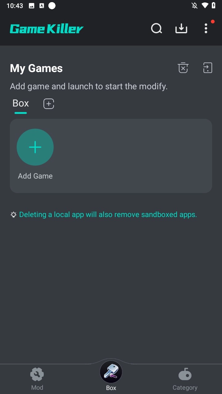 打开后即可即可进入沙箱页面下点击添加游戏的按钮。