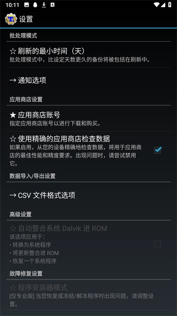 钛备份是一款实用的数据备份工具平台,主要提供数据文件的全面备份与批量恢复服务。用户获取ROOT权限后,它能完整备份应用数据及系统设置,涵盖应用程序、用户数据、登录状态等内容,为数据安全提供更多保障。此外,该工具还具备个性化定时备份功能,可按照用户设定的时间自动执行备份任务,无需频繁手动操作,就能轻松确保重要数据定期更新保存。
