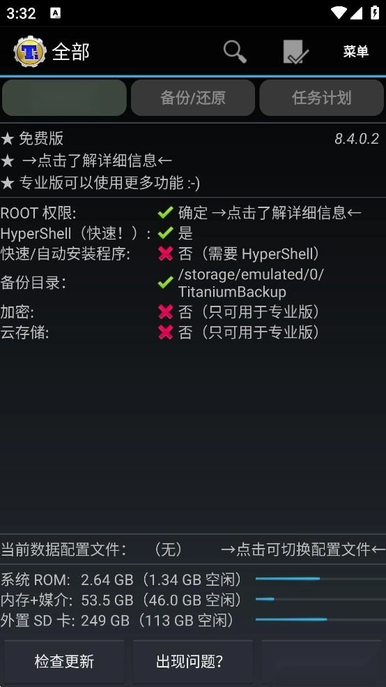 钛备份App自带中文界面,无需额外汉化操作,不过运行时需要获取ROOT权限。此外,它具备十分便捷的压缩备份功能,能让备份的程序等文件体积更小,同时稳定性也更强。