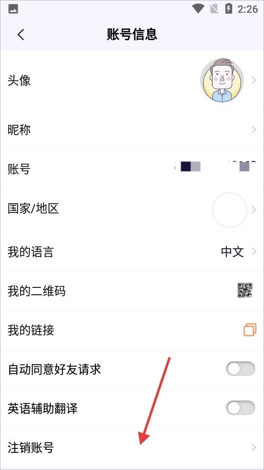 点击个人头像,进入账号信息页面。