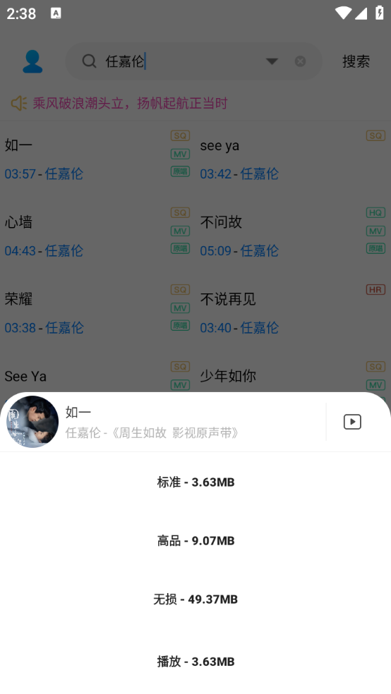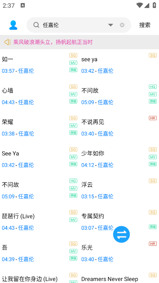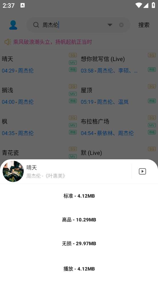3、点击搜索,立马就会出现相应的歌曲资源。
