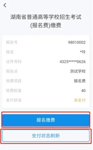 考生需确认高考报名费的缴费信息,点击【报名缴费】按钮就能完成缴费。(温馨提示:要是已经成功支付了报名费,可以点击【支付状态刷新】按钮更新状态,不需要再次支付。)