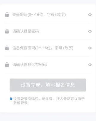 实人认证成功后,系统将自动跳转至登录设置与信息保存密码的界面。若需修改密码,考生需先登录账号,再进入【个人信息】板块,点击【密码设置】选项进行操作;且每次修改密码前,均需完成实人认证步骤。