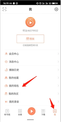 点击页面底部的“我”,进入个人中心后选择“我的钱包”选项。