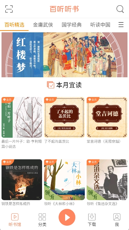 金庸武侠:正版授权,涵盖朗读版、广播剧、粤语版等多版本演绎,带您感受原汁原味的金庸武侠独特魅力。