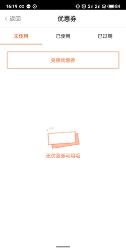 进入优惠券页面后,用户能查看未使用、已使用和已过期的优惠券。