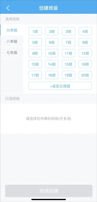 您可以先选择要任教的学年与班级,然后点击“添加班级”按钮。要是没有找到对应的班级,也能自行设置班级编号来添加。完成添加操作后,点击“创建班级”,这样就成功完成添加啦。