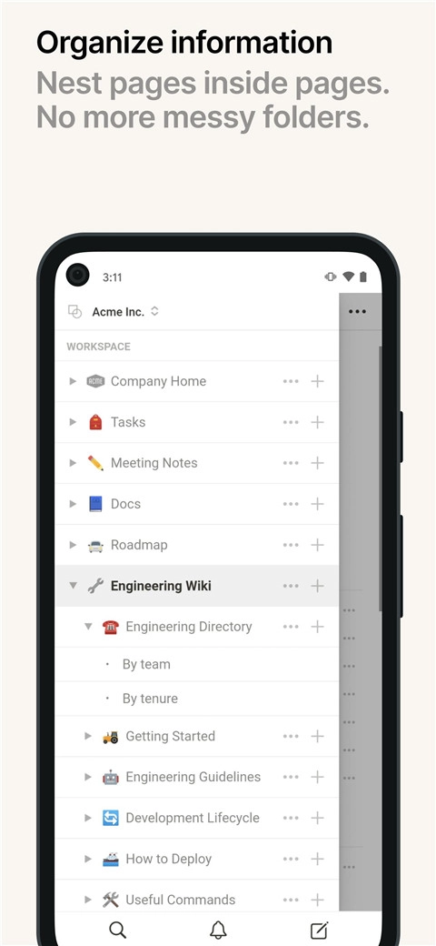 整理信息:通过在页面内嵌套页面的方式,告别以往文件夹杂乱无章的状态。