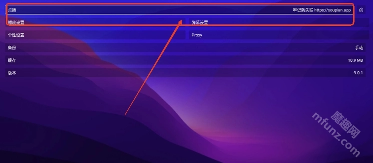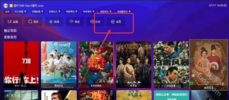 进入搜片.comapk首页,点击右上角设置