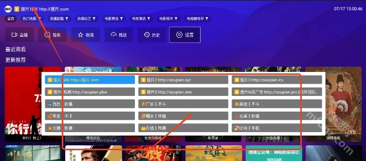搜片com电视版具备点播与直播功能,借助接口配置,能够解锁更丰富的影音内容,无需在多个平台间反复切换,就能尽情观看各大影视平台的热播剧、综艺、电影、电视剧等资源。其界面设计简洁友好,操作非常方便,堪称名副其实的一站式影视播放利器!