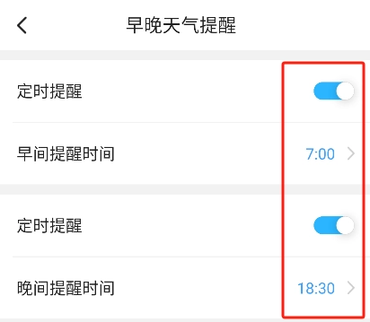 打开早间与晚间的提醒开关,并设置好一天的提醒时间。