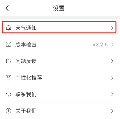 点击右上角的更多功能图标,接着在设置里找到“天气通知”选项并进入。