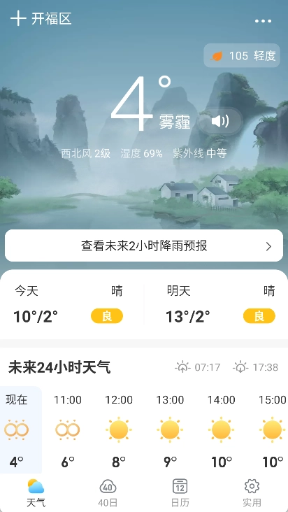 - 多样天气资讯:实时天气状况、未来24小时逐时预报与15日趋势预测,还有空气质量指数等内容。