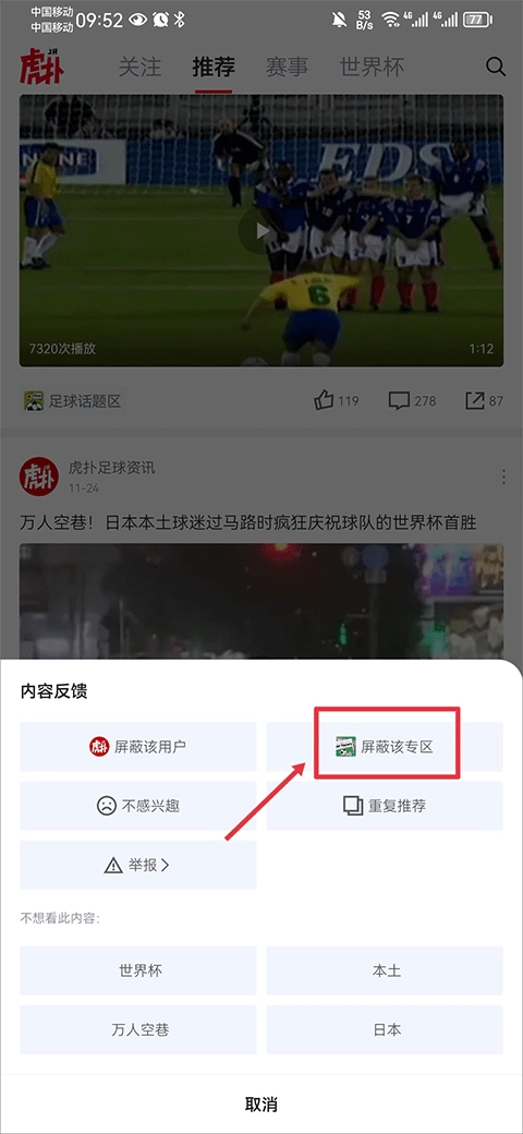 之后会出现一个内容反馈页面,最后点击屏蔽该专区就可以了。
