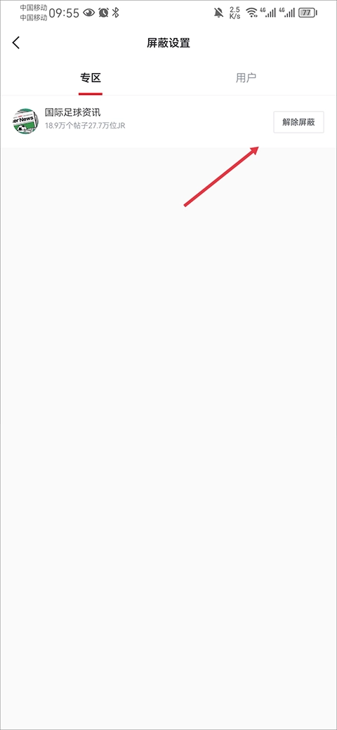 最后在屏蔽设置中的专区下将屏蔽的专区解除即可