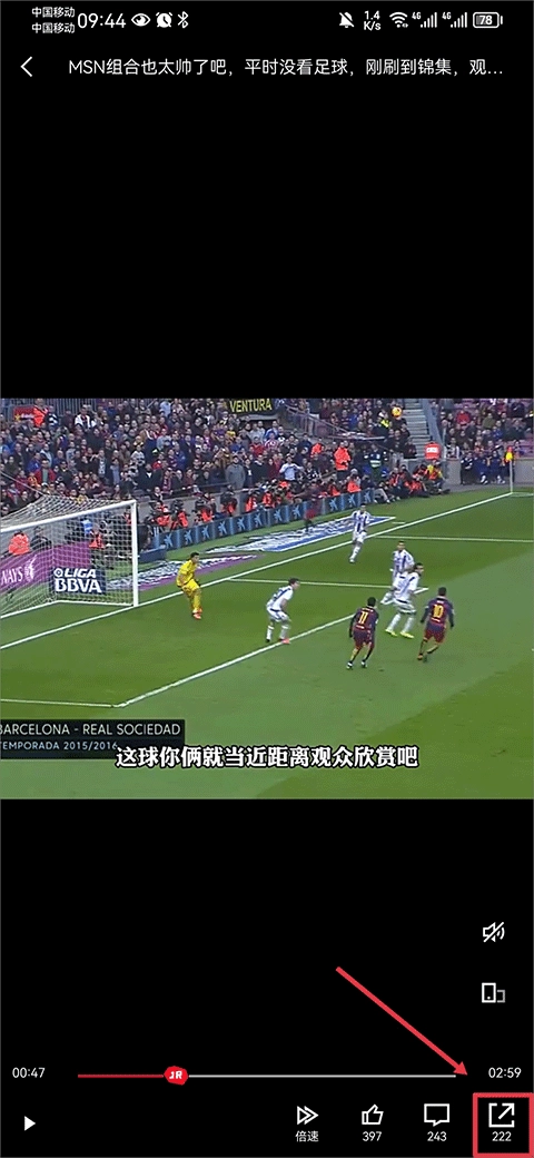 进入到视频内容界面后,点击右下角的分享图标