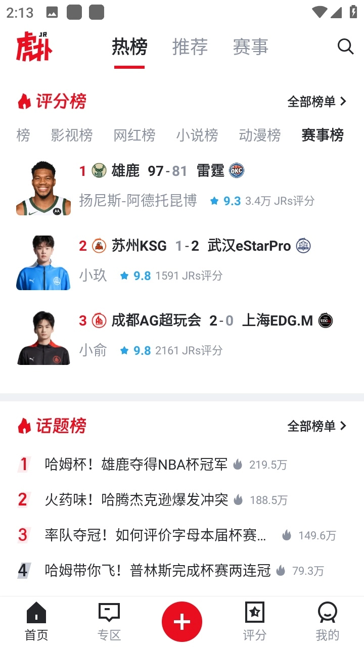 获得关于篮球、足球、游戏电竞的海量内容:看NBA、CBA、路人王、LPL、KPL、绝地求生、和平精英、中超、欧冠、英超、西甲、德甲、意甲、法甲等赛事的新闻、直播、视频、数据,与专业又不失有趣的 JRs 讨论、分享和学习实战经验,给心仪的球员来打分,交流正品低价运动装备等。还能近距离与库里、阿德托昆博、林书豪、武磊等球星进行互动。