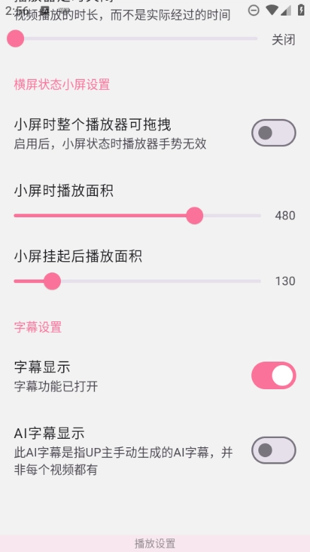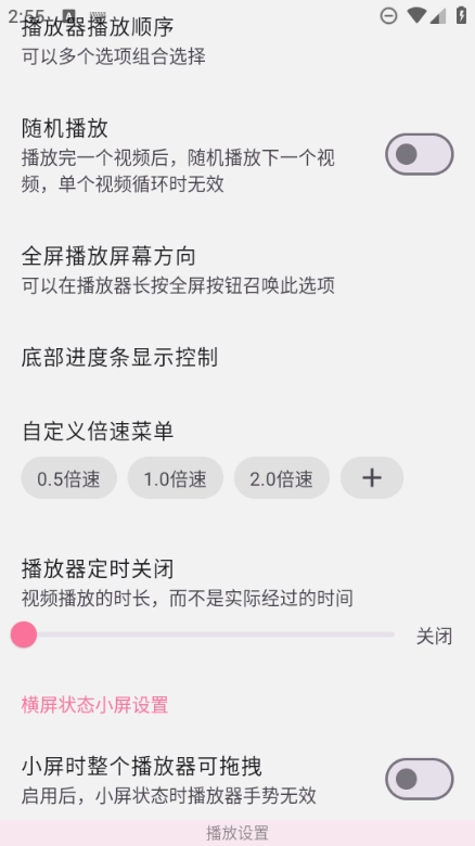 设置默认全屏播放,关闭小屏播放设置路径:进入设置页面→视频设置→打开默认全屏播放