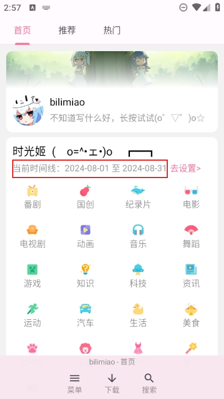 时光机功能设置设置时间功能说明设置时间范围,可以查看该时间范围的热门视频,目前仅对分区列表生效