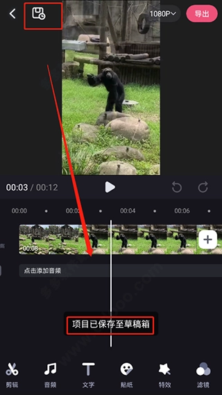 设置完成后,可点击左上角保存至草稿箱,也能通过右上角导出,这样就完成剪辑了。