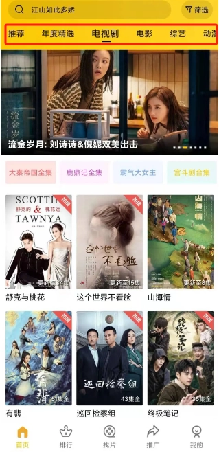 首页分类浏览:打开软件后,首页会呈现出一排分类选项,像年度精选、电视剧、电影、综艺之类都包含在内,你能够依据这些分类去浏览,从而找到自己想看的电影或者电视剧。