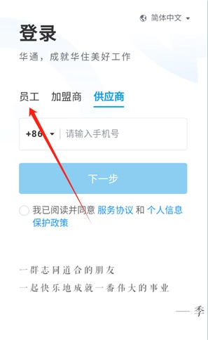 在登录界面选择员工