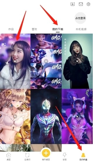 然后点击右下角的“我的作品”,进入后点击“我的”,再点击刚才设置的视频壁纸。