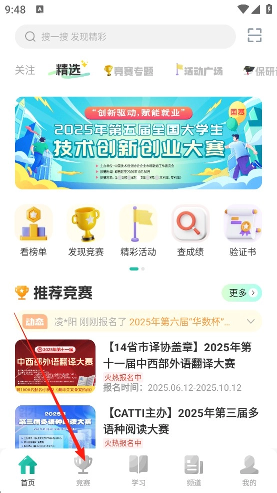 打开赛氪App,点击【竞赛】