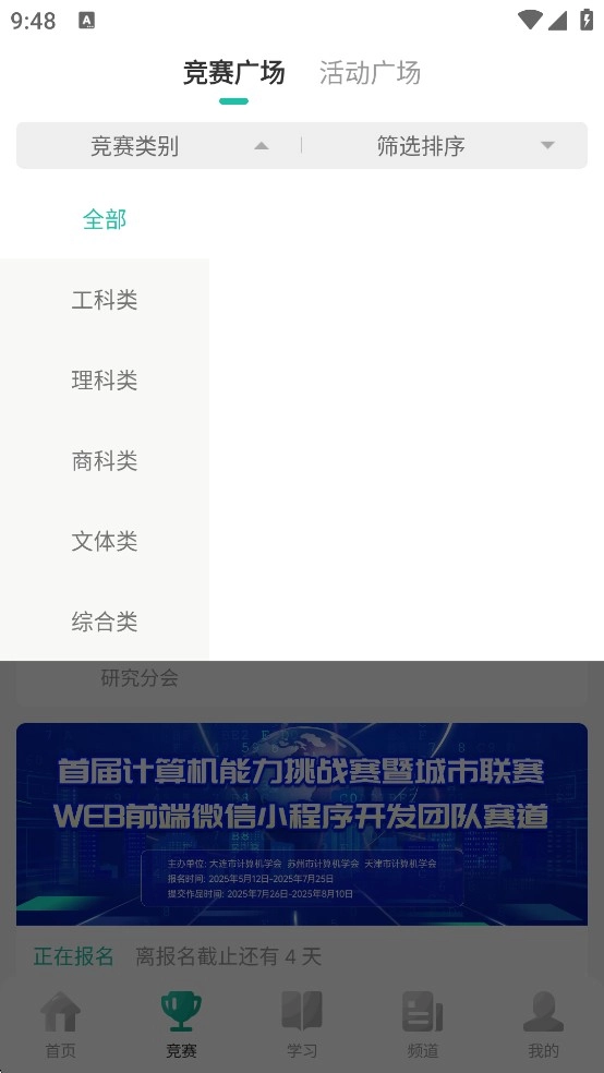然后点击筛选竞赛类型