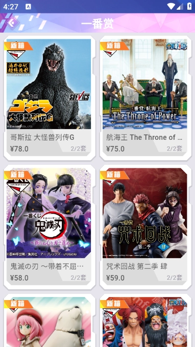 点击一番赏可以看到许多动漫手办,点击即可购买