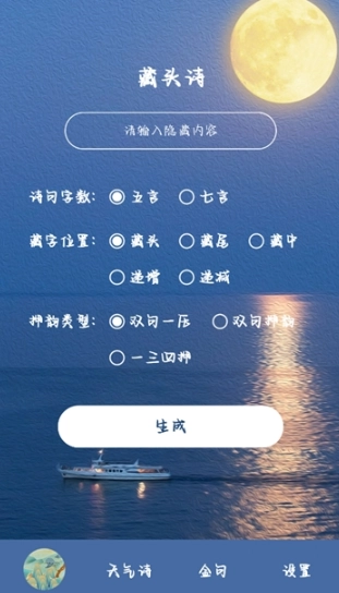 打开藏头诗生成器后,你能在主界面设置相关要求,接着点击生成按钮即可。