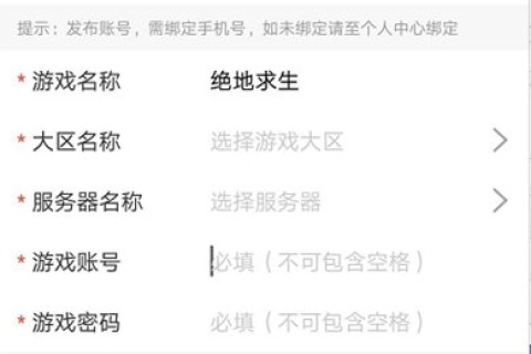 填写账号的详细信息,像游戏大区、账号与密码之类的内容都要包含在内。玩家也能在描述里介绍游戏的亮点,例如LOL拥有多少英雄和皮肤,这些都是提升账号吸引力的关键要素。