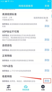 点击右上角的【新增】按钮,也能够自定义网络环境模板,以此来模拟不同地区、不同运营商以及不同的网络场景。