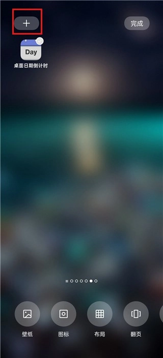 进入插件选择界面,找到桌面日期倒计时组件,点击添加按钮完成添加操作