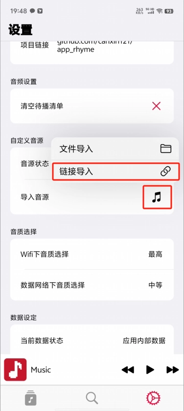 导入你的音源来丰富听歌选择,只需简单操作就能轻松导入,尽情享受来自不同平台的优质音乐。