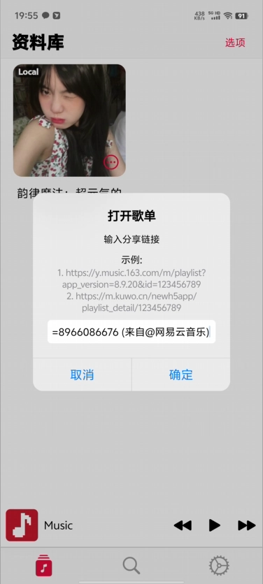 导入音源后就能直接使用,目前仅支持导入云村和鹅厂旗下某我的歌单,其他音乐平台暂时还不支持。操作很简单,只要把对应的歌单链接填写到指定的输入框里,打开歌单之后,需要把它保存成一个新添加的歌单,这样才能存储到软件当中方便后续使用。