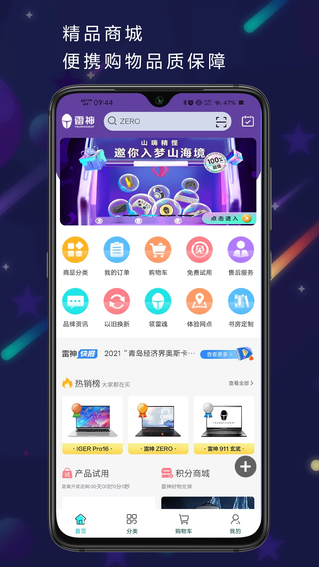 提供雷神笔记本电脑、游戏本、台式机以及VR设备、鼠标、机械键盘、电竞耳机、背包等周边产品的购买及售后服务。